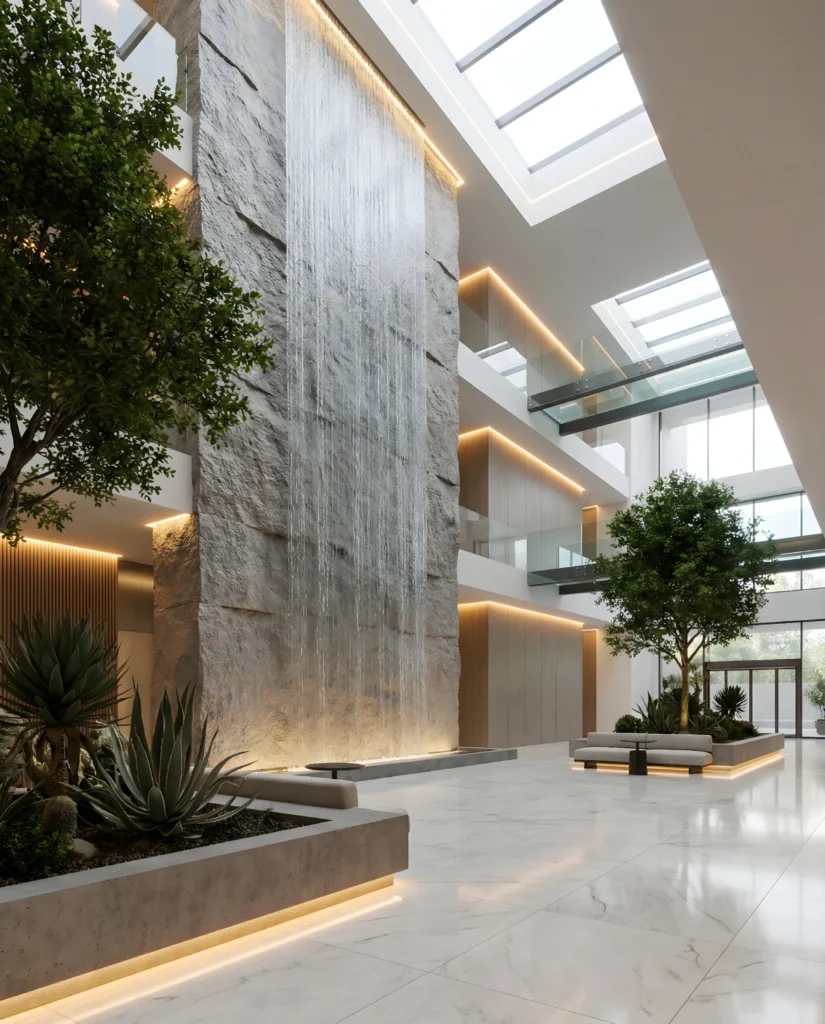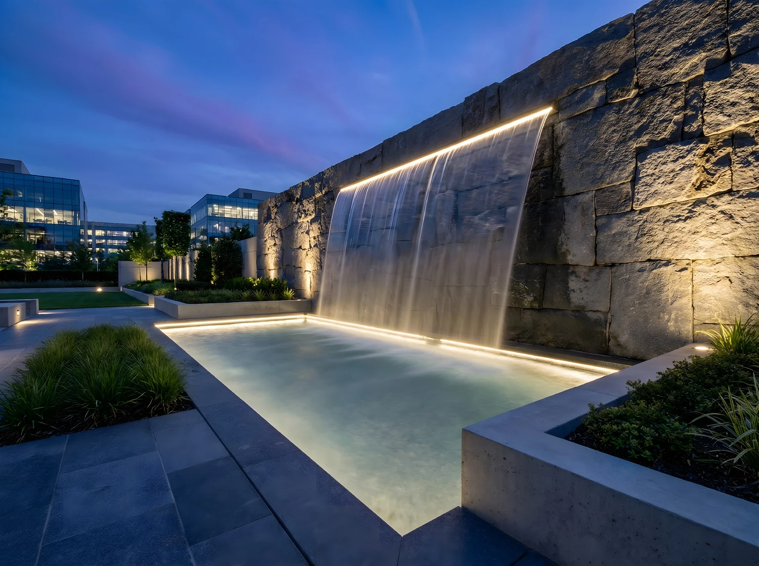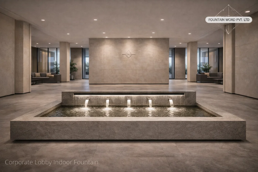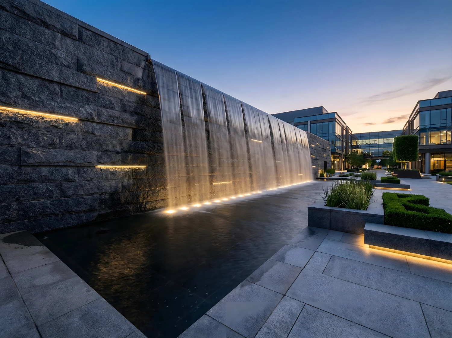 Architectural water features that enhance workplace ambience, brand presence, and visitor engagement.