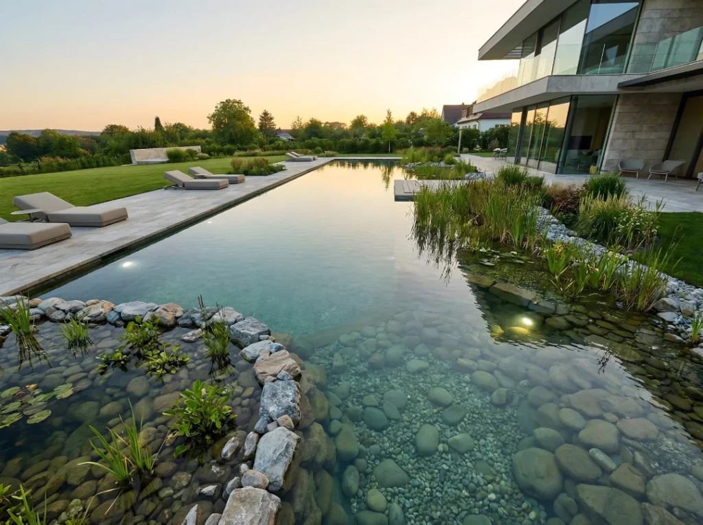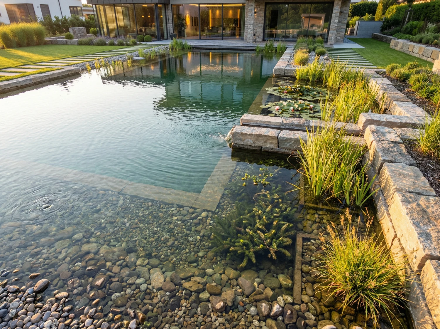Natural ponds are designed as self-sustaining water ecosystems that operate without chemical treatment. Through advanced bio-filtration techniques, water clarity is maintained naturally using aquatic plants, layered substrates, and controlled circulation.